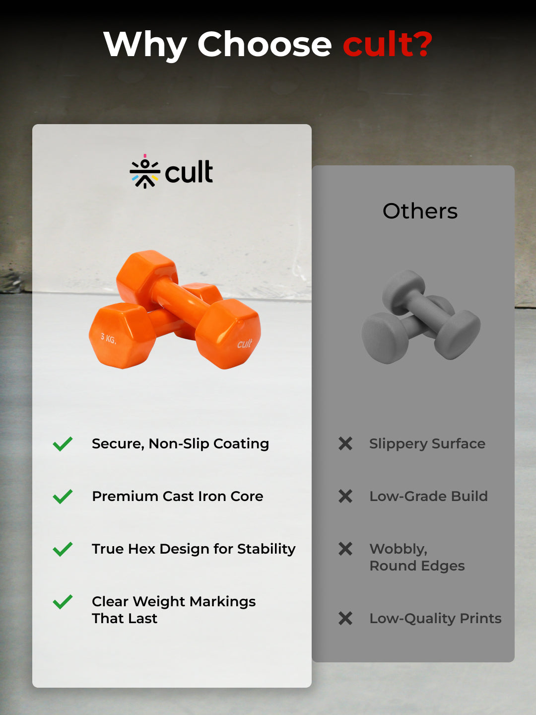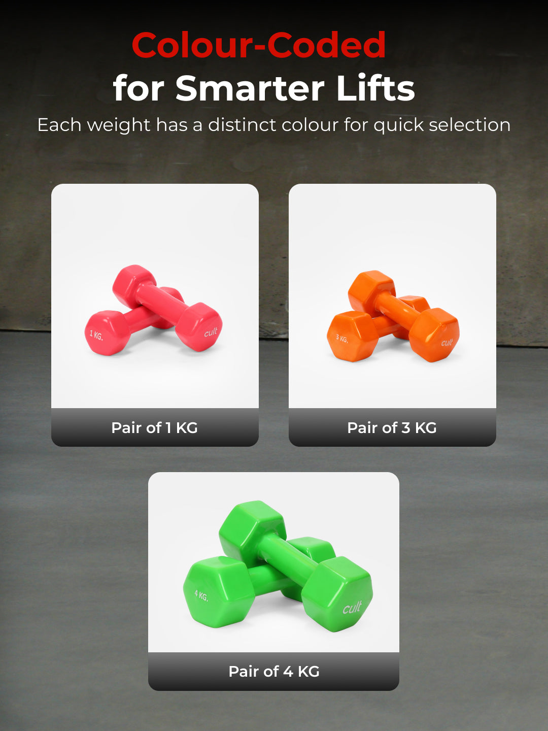Cult Vinyl Dumbbells Combo for Home Gym Exercise (1kg + 3kg + 4kg Set) 16kg | Dumbbells with Rack