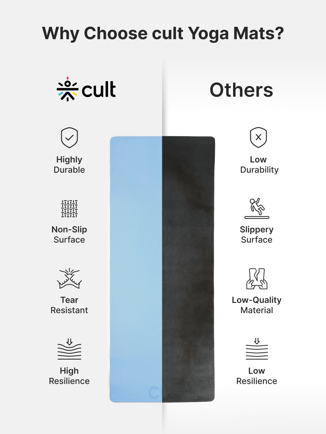 Cult Yoga Mat 4mm EVA with Carry Strap Lightweight, Non-Slip, Cushioned & Sweat-Resistant Exercise Mat Eco-Friendly Workout Mat for Yoga, Pilates, Meditation & Home Gym Blue