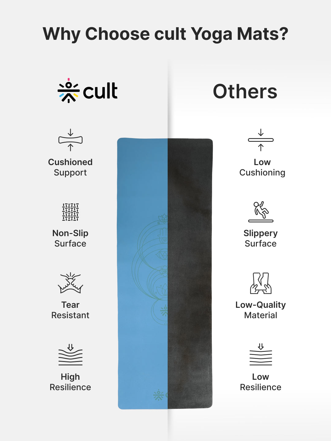 Cult TPE Yoga Mat, Non-Toxic Latex-Free, Anti-Slip, Extra-Thick Cushioning, Tear-Resistant, Travel Strap 6mm (Reef Blue)