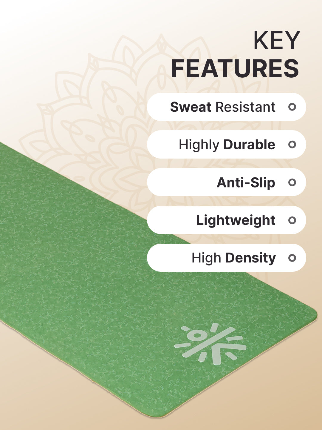 PORTABLE AND LIGHTWEIGHT: Designed for easy transport, this lightweight yoga mat comes with a convenient carry strap, making it simple to roll up and take anywhere. ANTI-SLIP SURFACE: The anti-slip surface provides a secure grip, ensuring stability and safety during every pose. Perfect for all yoga styles, pilates, and stretching routines. HIGH-DENSITY TPE MATERIAL: Crafted from premium, non-toxic, and eco-friendly TPE material, this yoga mat offers exceptional grip and long-lasting durability. OPTIMAL 6MM THICKNESS: The 6mm thickness provides the perfect balance of cushioning and stability, offering support and a firm surface for balance. Ideal for both intense and restorative practices, it ensures comfort and security throughout your entire session.